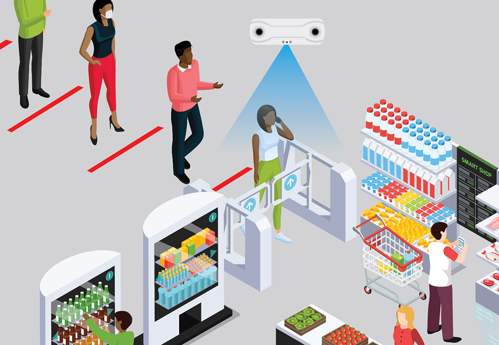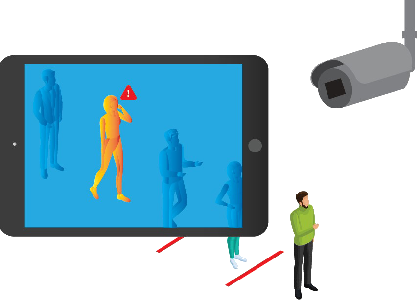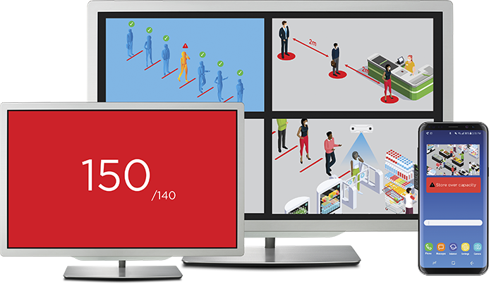 Honor physical distancing rules by counting the number of people entering and exiting your facility and get real-time, visual alerts when occupancy limits are exceeded. Our Searchlight solution tracks the number of people entering your store and displays the data on a local color-coded monitor. The user-configurable solution lets you decide how and when you’re alerted. For example, you can set rules so that green means your occupancy count is ok, yellow warns you’re approaching the threshold, and red indicates you’ve exceeded the limit.